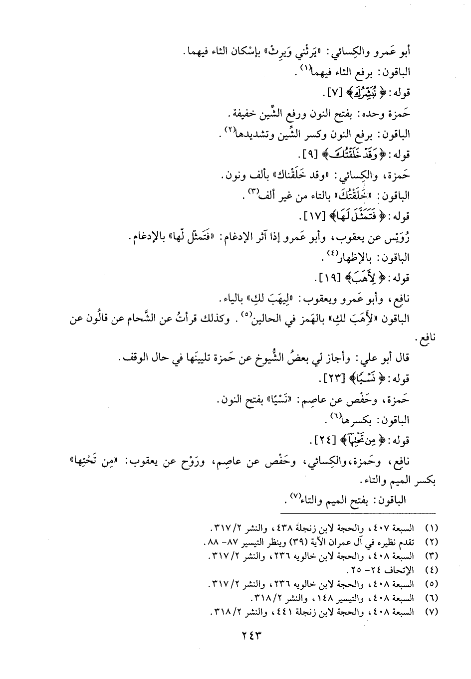 (7) السبعة 408، والحجة لابن زنجلة 441، والنشر 2/ 318.