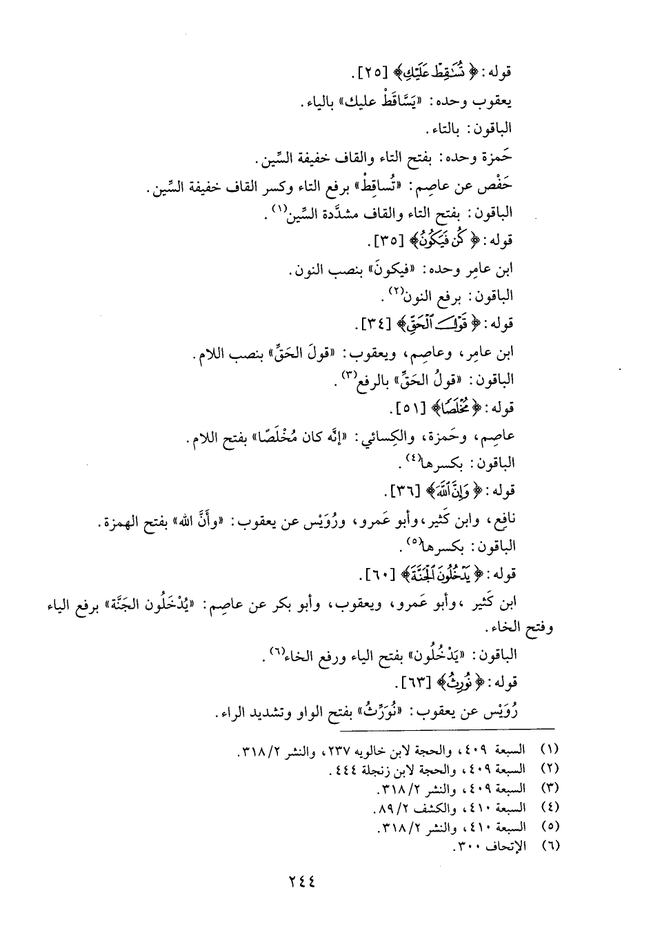 (1) السبعة 409، والحجة لابن خالويه 237، والنشر 2/ 318.