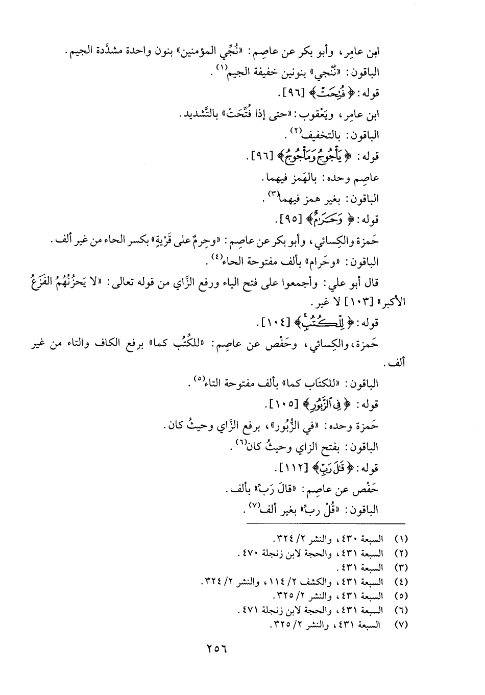 (6) السبعة 431، والحجة لابن زنجلة 471.