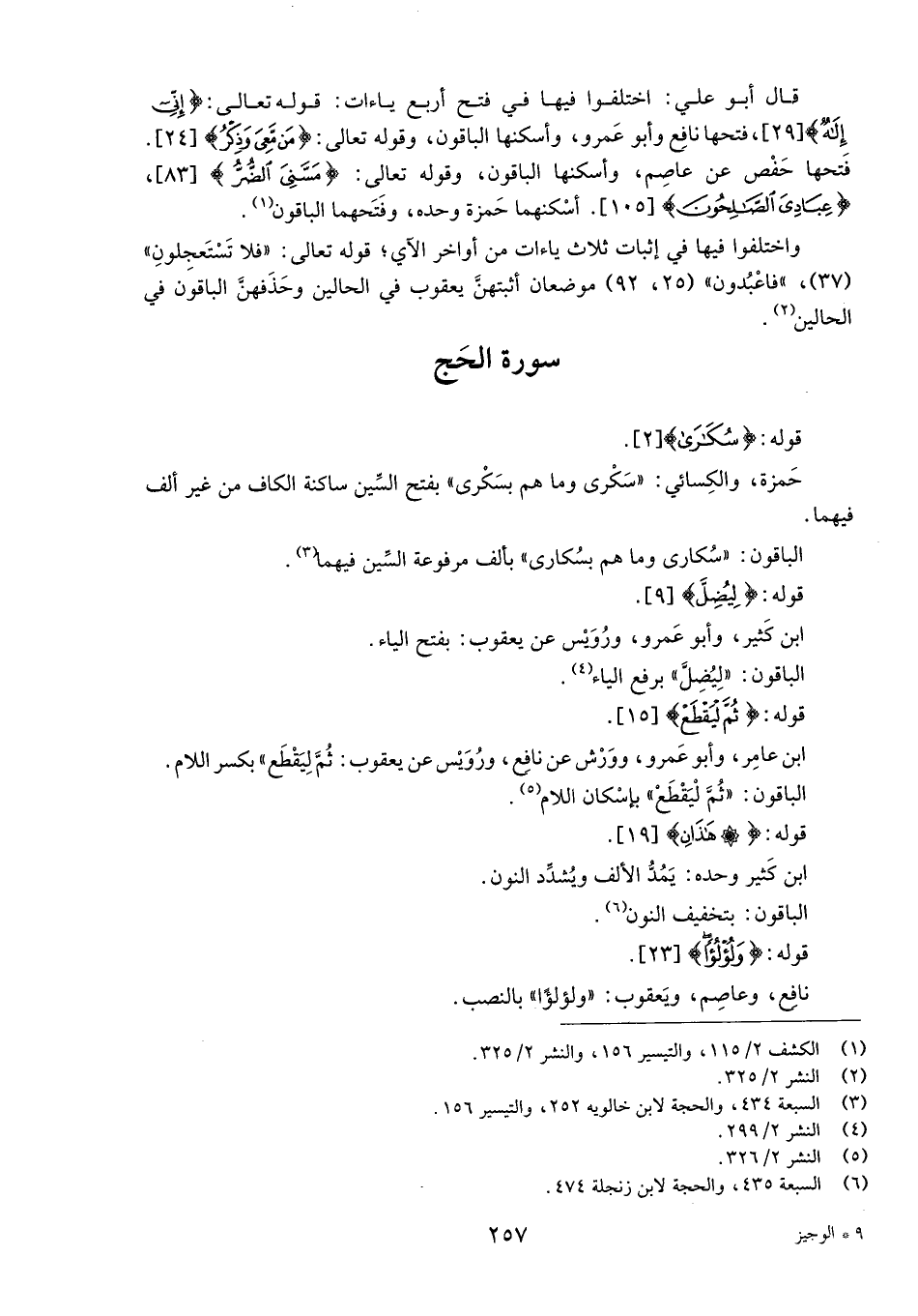 (6) السبعة 435، والحجة لابن زنجلة 474.