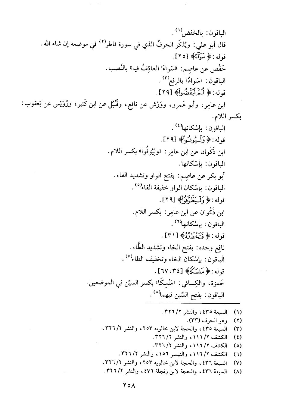 (8) السبعة 436، والحجة لابن زنجلة 476، والنشر 2/ 326.
