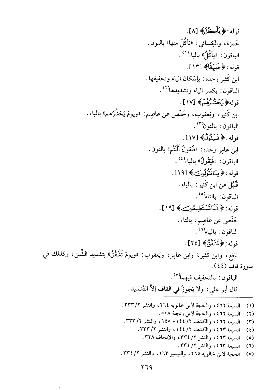 (2) السبعة 462، والحجة لابن زنجلة 508.
