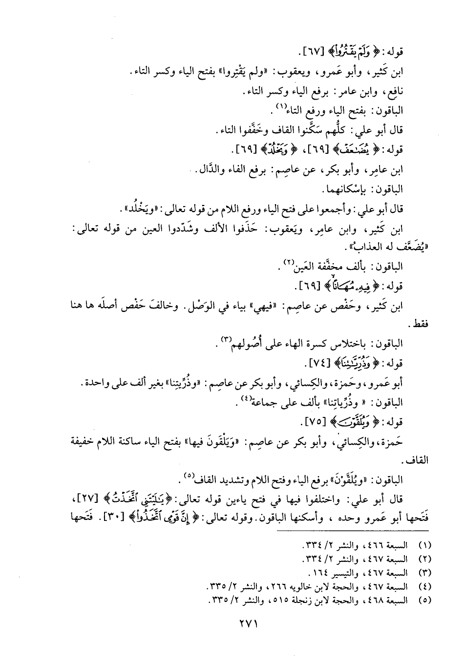 (5) السبعة 468، والحجة لابن زنجلة 515، والنشر 2/ 335.