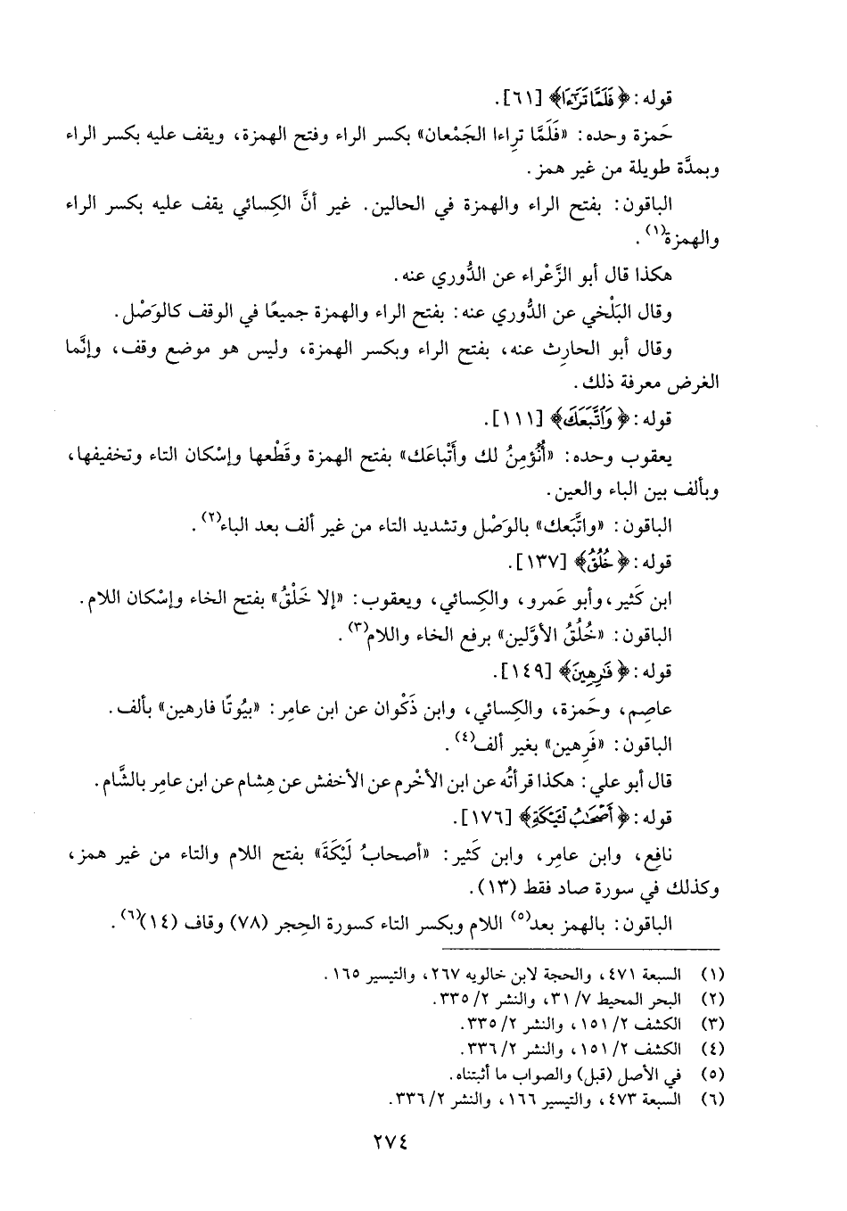 (1) السبعة 471، والحجة لابن خالويه 267، والتيسير 165.
