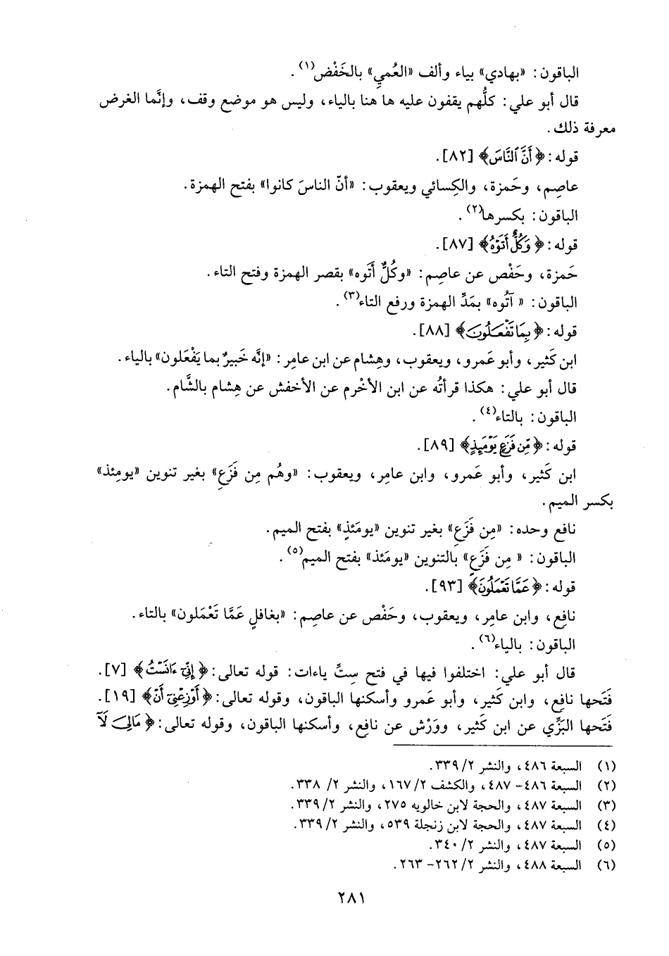 (6) السبعة 488، والنشر 2/ 262 - 263.
