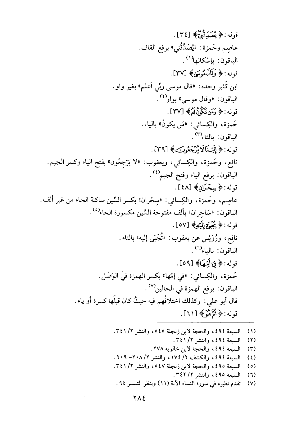 (3) السبعة 494، والحجة لابن خالويه 278.