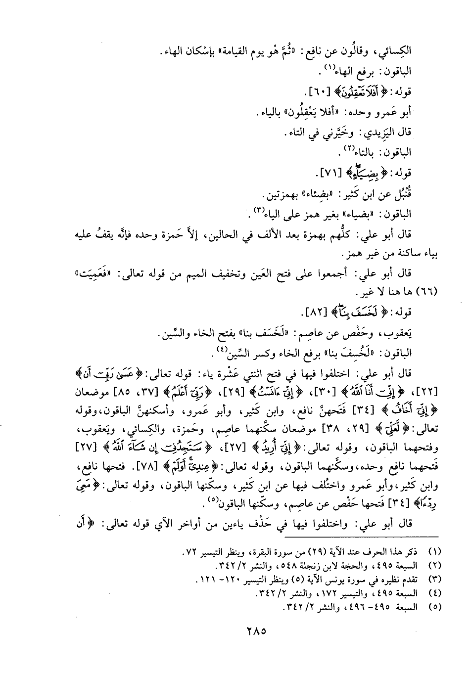 (5) السبعة 495 - 496، والنشر 2/ 342.