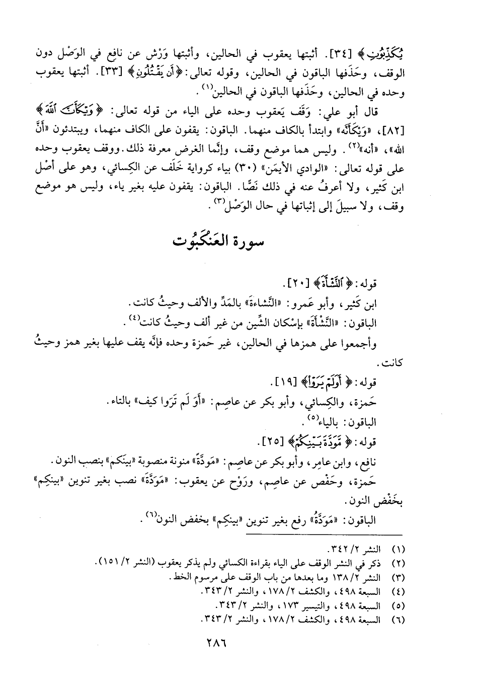 (6) السبعة 498، والكشف 2/ 178، والنشر 2/ 343.