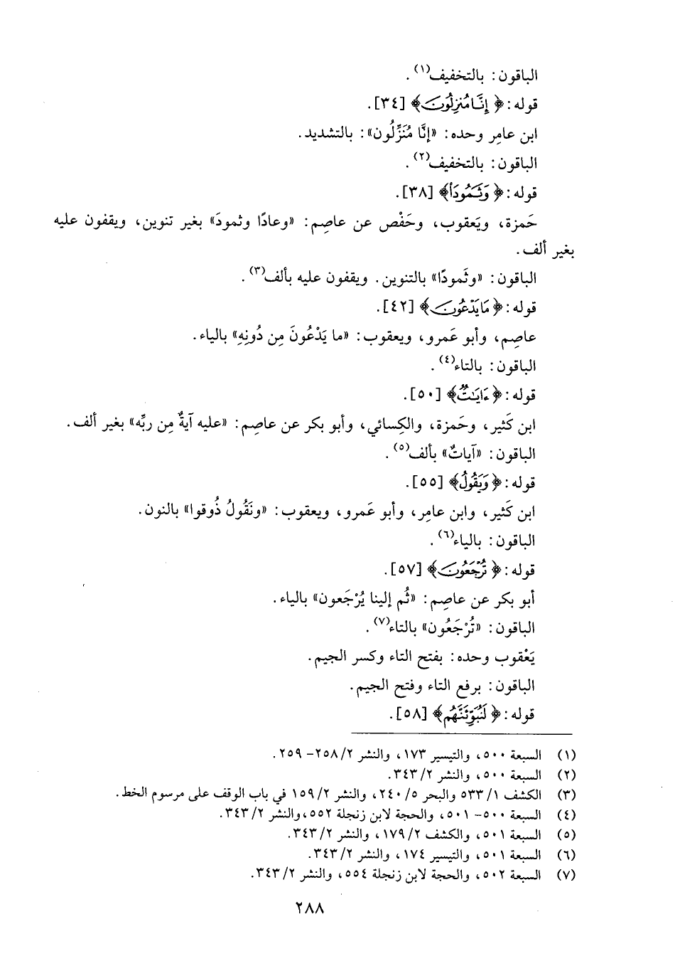 (4) السبعة 500 - 501، والحجة لابن زنجلة 552، والنشر 2/ 343.