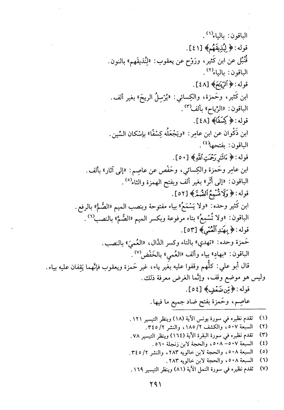 (6) السبعة 508، والحجة لابن خالويه 283.