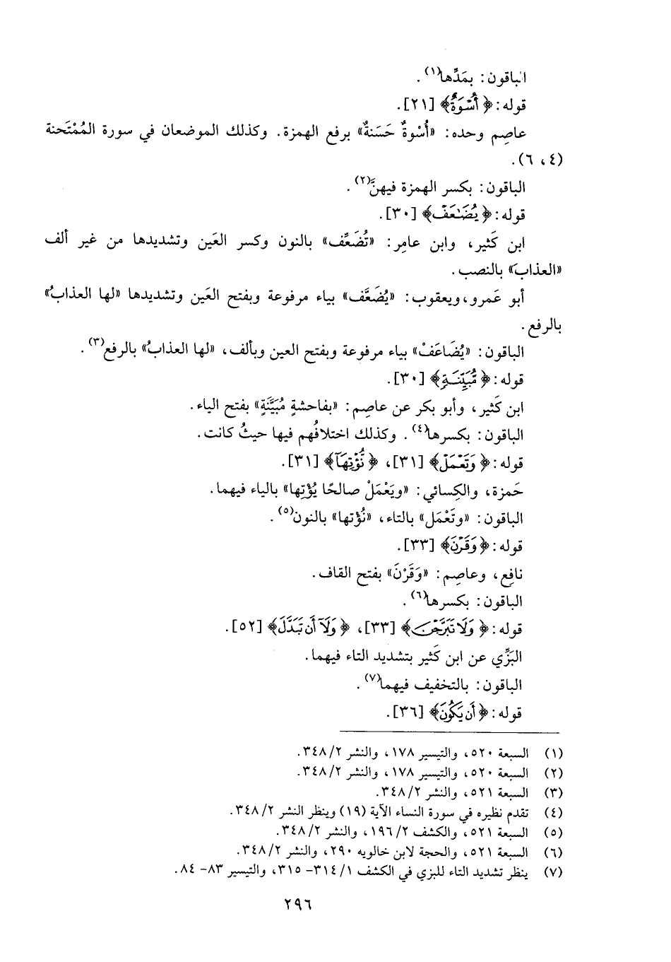 (1) السبعة 520، والتيسير 178، والنشر 2/ 348.