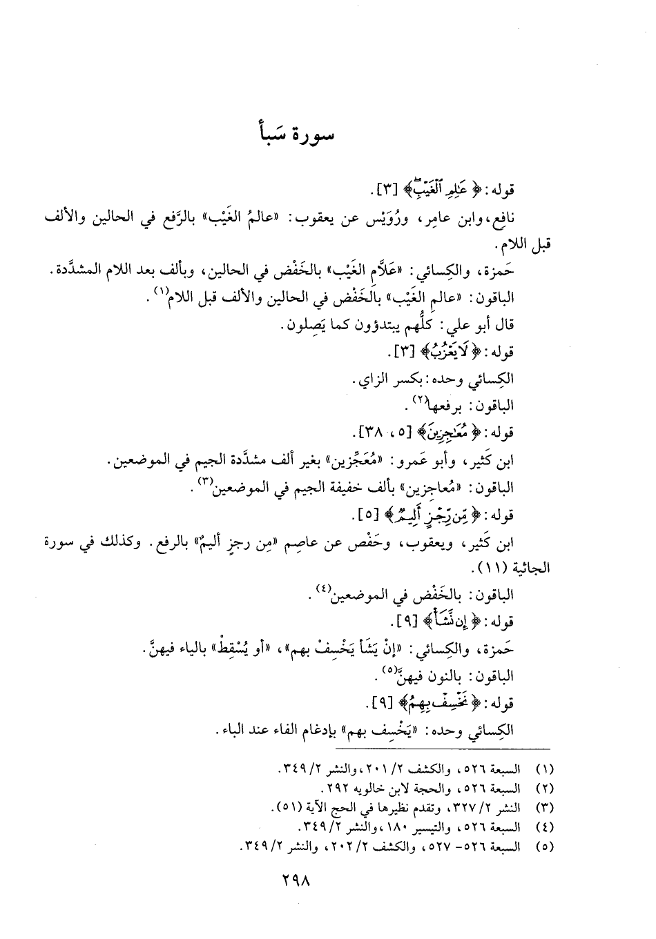 (2) السبعة 526، والحجة لابن خالويه 292.