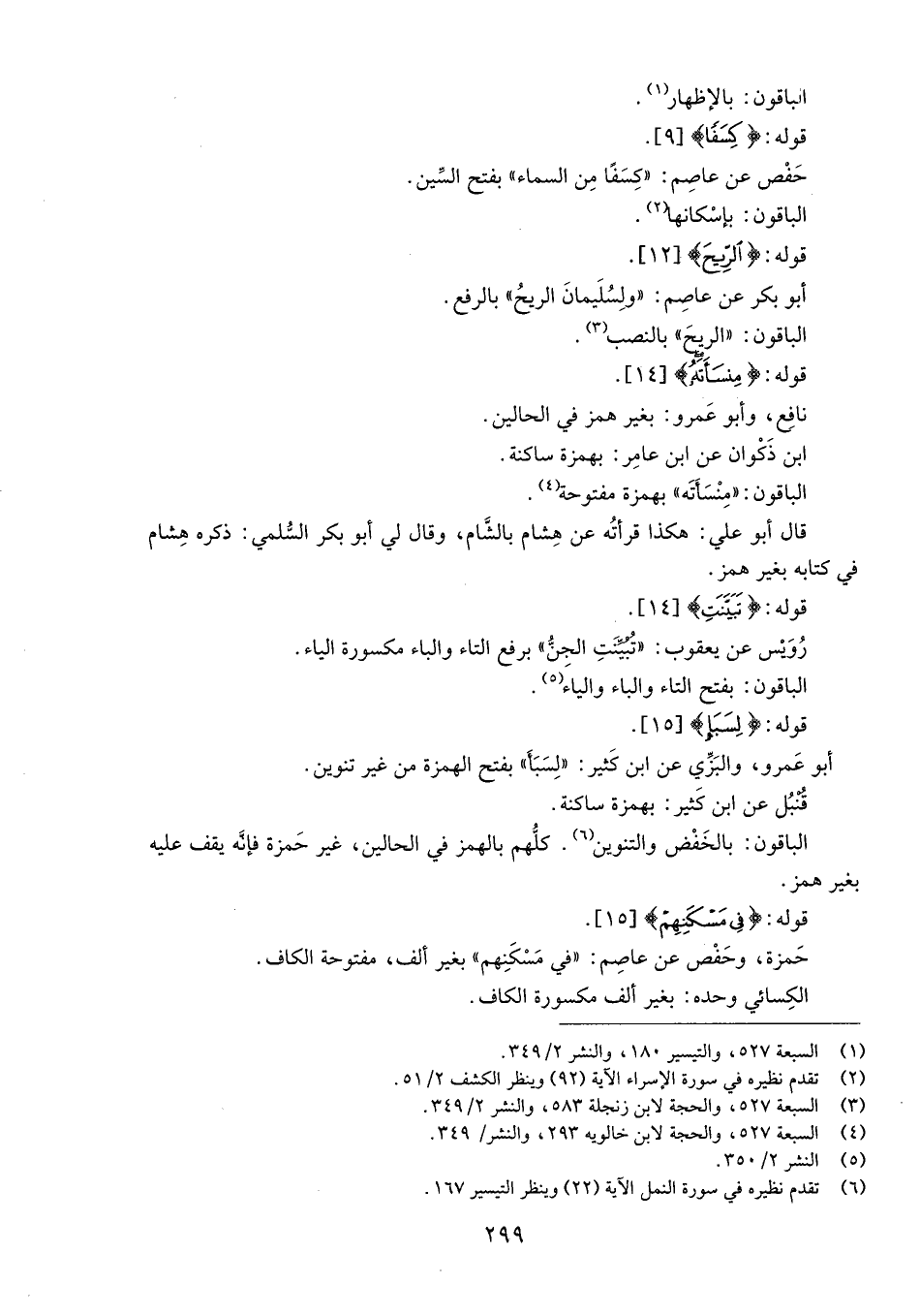 (4) السبعة 527، والحجة لابن خالويه 293، والنشر/ 349.