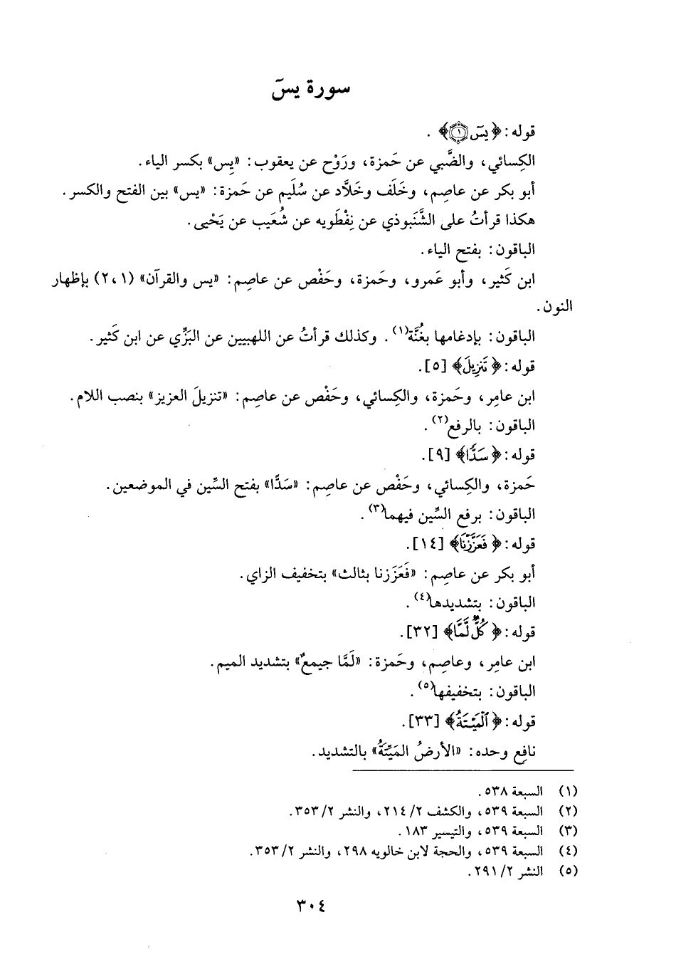 (2) السبعة 539، والكشف 2/ 214، والنشر 2/ 353.