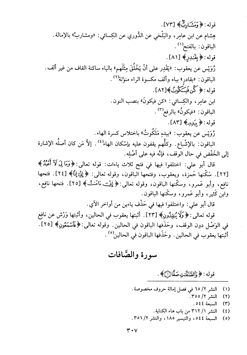 (4) النشر 1/ 312 من باب هاء الكناية.