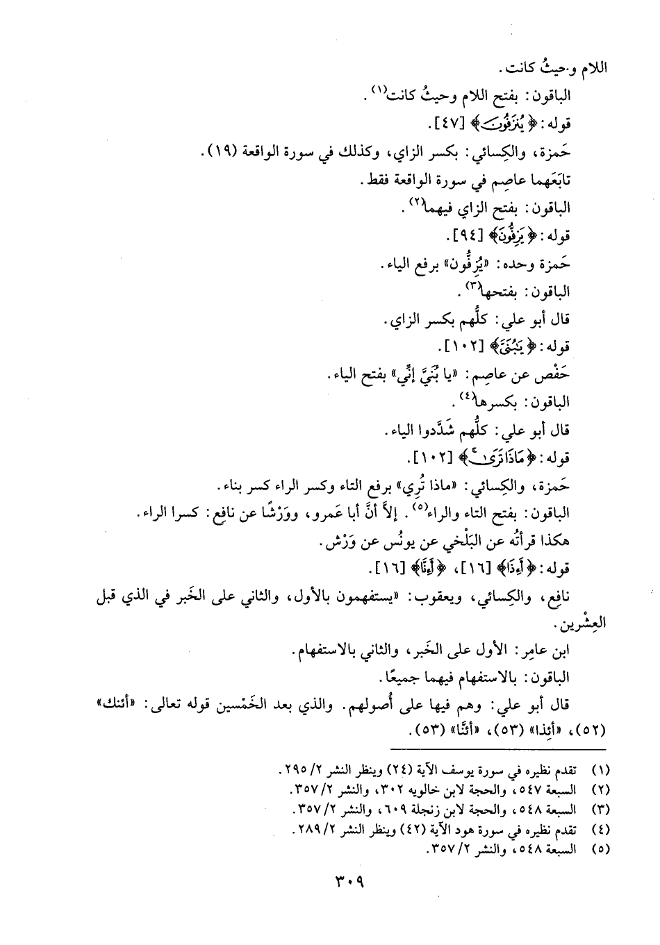 (2) السبعة 547، والحجة لابن خالويه 302، والنشر 2/ 357.