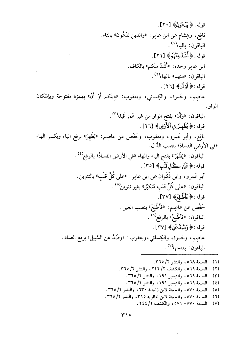 (7) السبعة 570 - 571، والكشف 2/ 244.