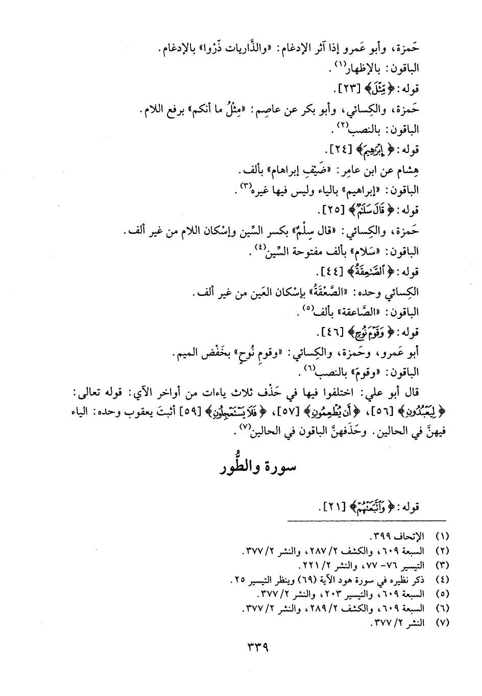 لِيَعْبُدُونِ [56]، أَنْ يُطْعِمُونِ [57]، فَلا يَسْتَعْجِلُونِ [59] أثبت يعقوب وحده: الياء فيهنّ في الحالين. وحذفهنّ الباقون في الحالين «7».