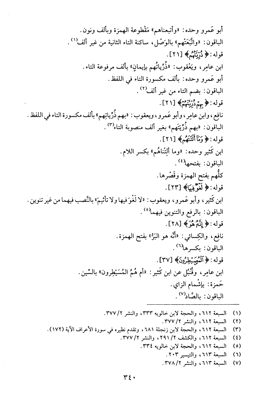 (5) السبعة 612، والحجة لابن خالويه 334.