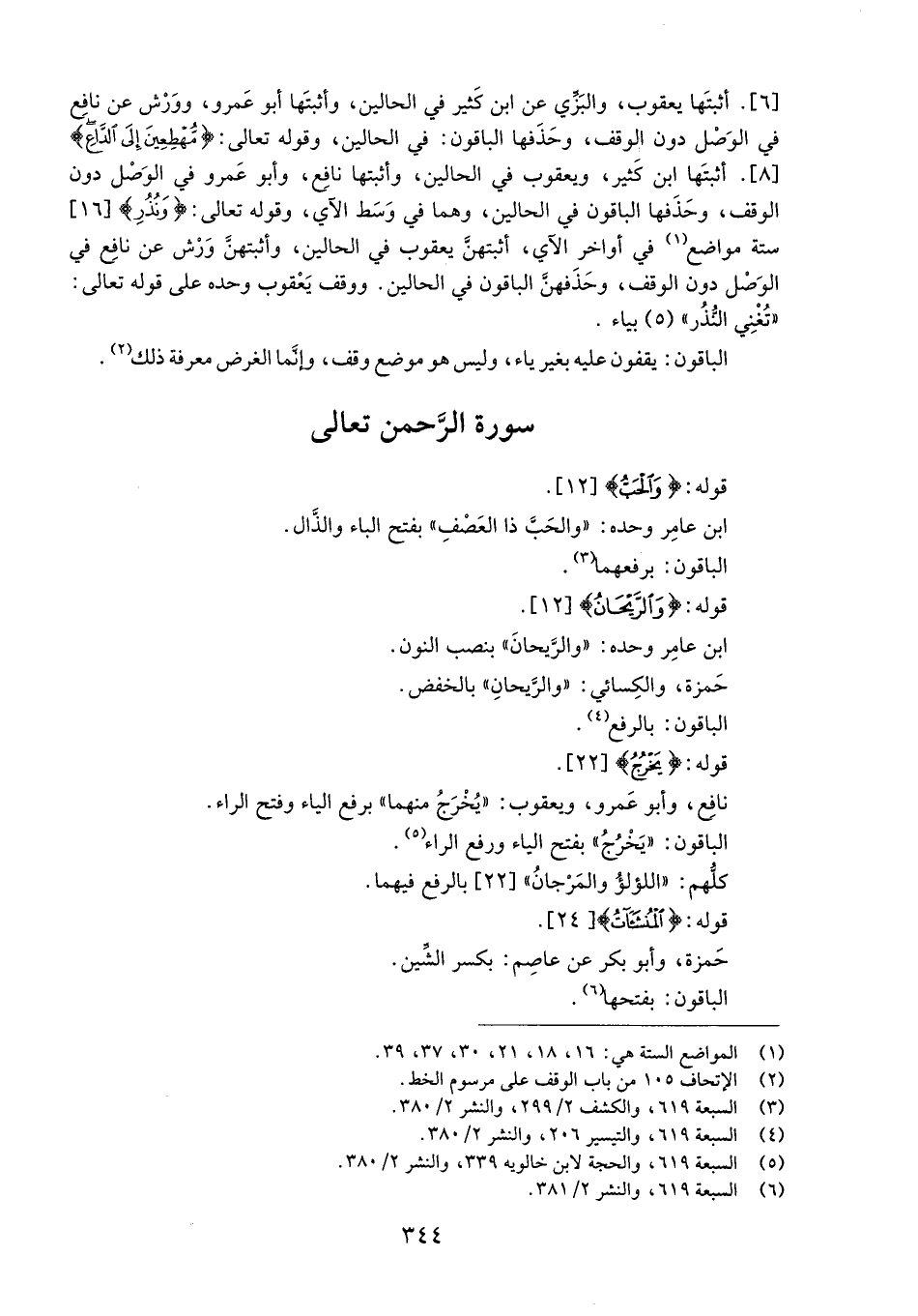 (2) الإتحاف 105، من باب الوقف على مرسوم الخط.