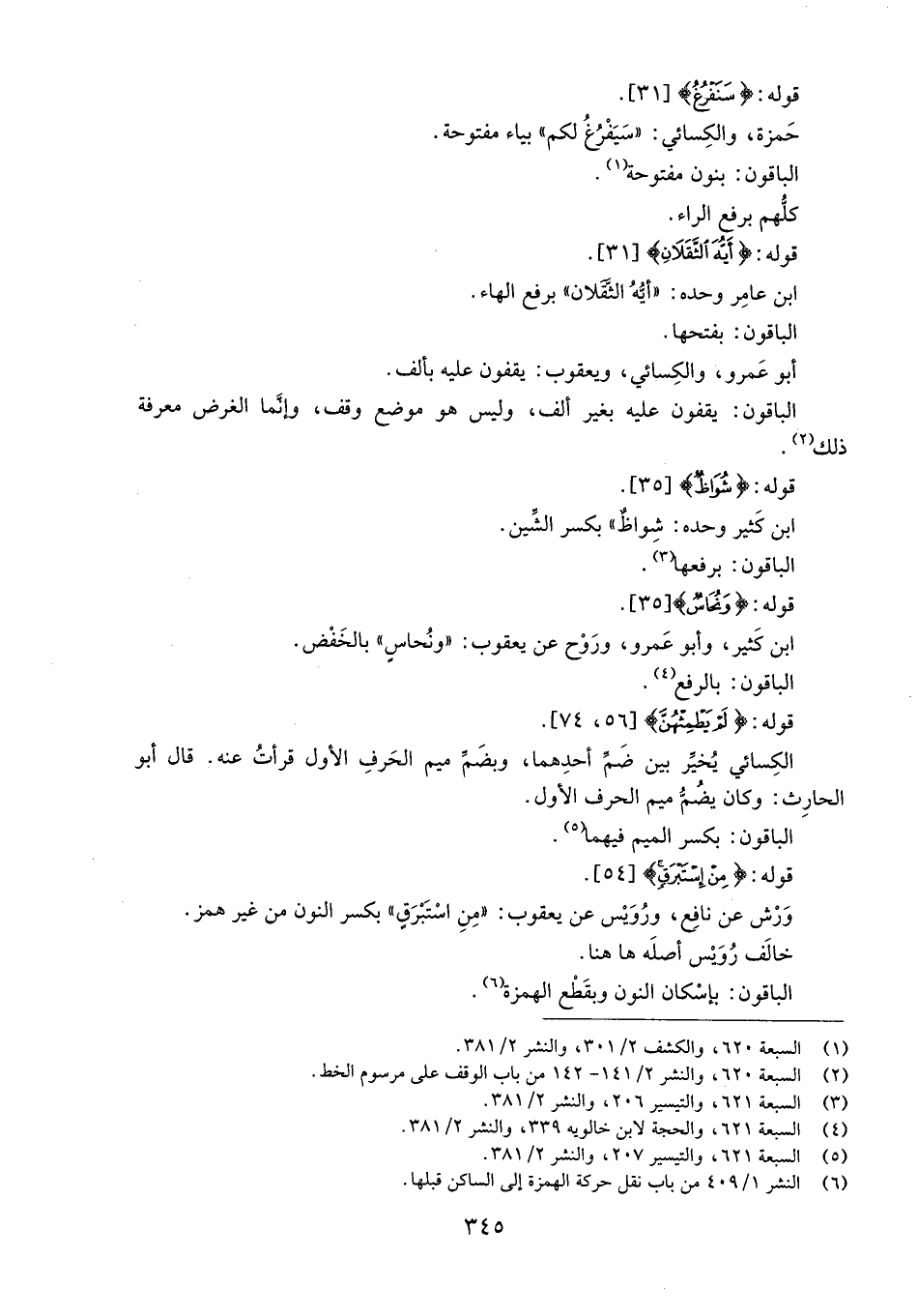 (1) السبعة 620، والكشف 2/ 301، والنشر 2/ 381.