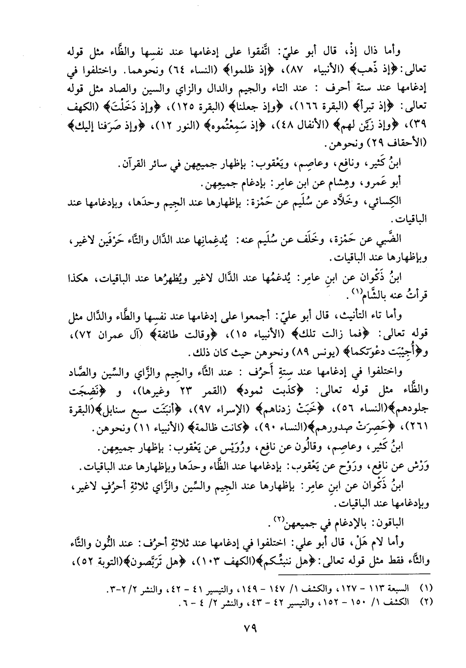 (2) الكشف 1/ 150 - 152، والتيسير 42 - 43، والنشر 2/ 4 - 6.