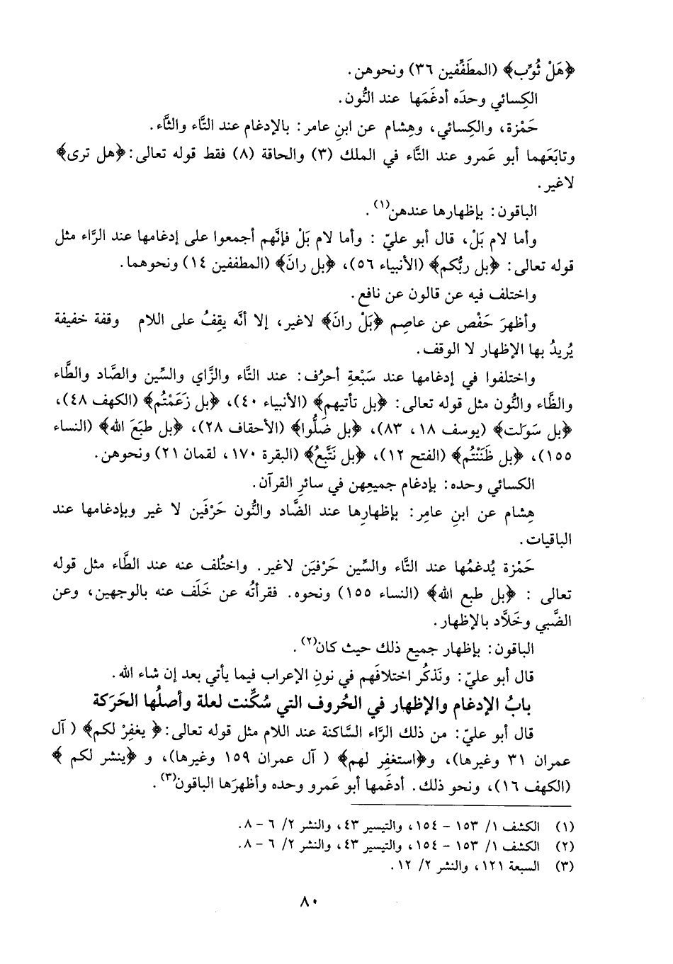 (2) الكشف 1/ 153 - 154، والتيسير 43، والنشر 2/ 6 - 8.