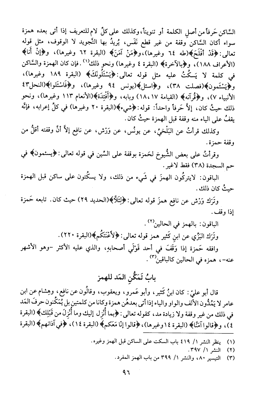 (1) ينظر النشر 1/ 419 باب السكت على الساكن قبل الهمز وغيره.