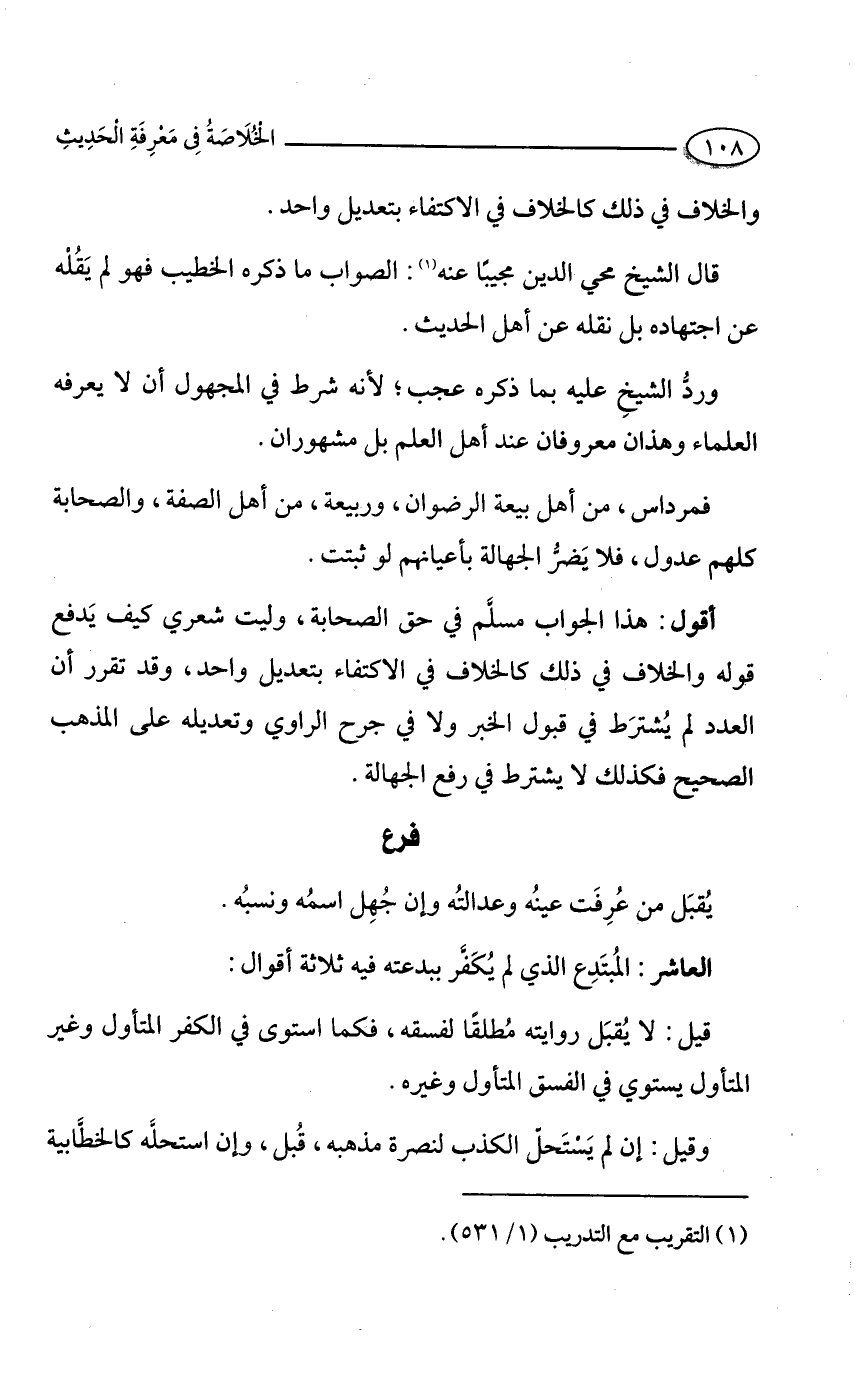 قال الشيخ محي الدين مجيبًا عنه (¬1): الصواب ما ذكره الخطيب فهو لم يَقُلْه عن اجتهاده بل نقله عن أهل الحديث.