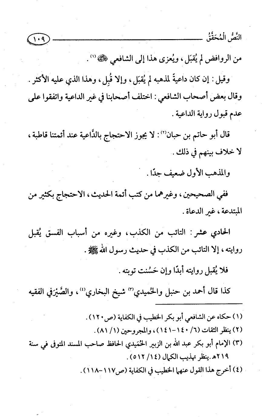 (¬1) حكاه عن الشافعي أبو بكر الخطيب في الكفاية (ص 120).