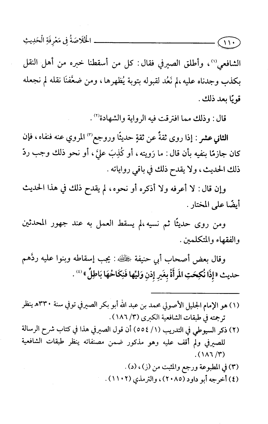 (¬2) ذكر السيوطي في التدريب (1/ 554) أن قول الصيرفي هذا في كتاب شرح الرسالة للصيرفي ولم أقف عليه وهو مذكور ضمن مصنفاته ينظر طبقات الشافعية (3/ 186).
