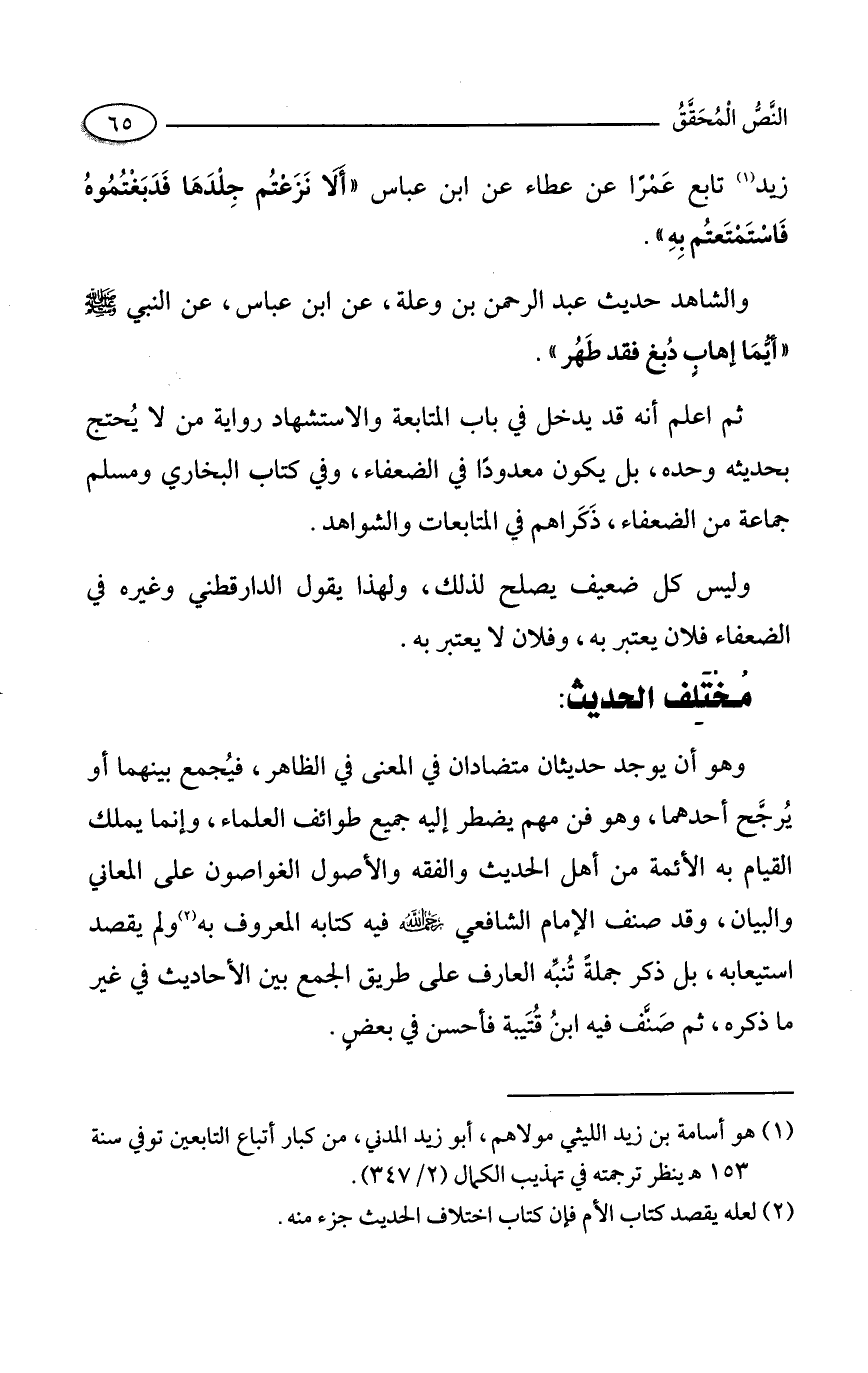 (¬1) هو أسامة بن زيد الليثي مولاهم، أبو زيد المدني، من كبار أتباع التابعين توفي سنة 153 هـ ينظر ترجمته في تهذيب الكمال (2/ 347).