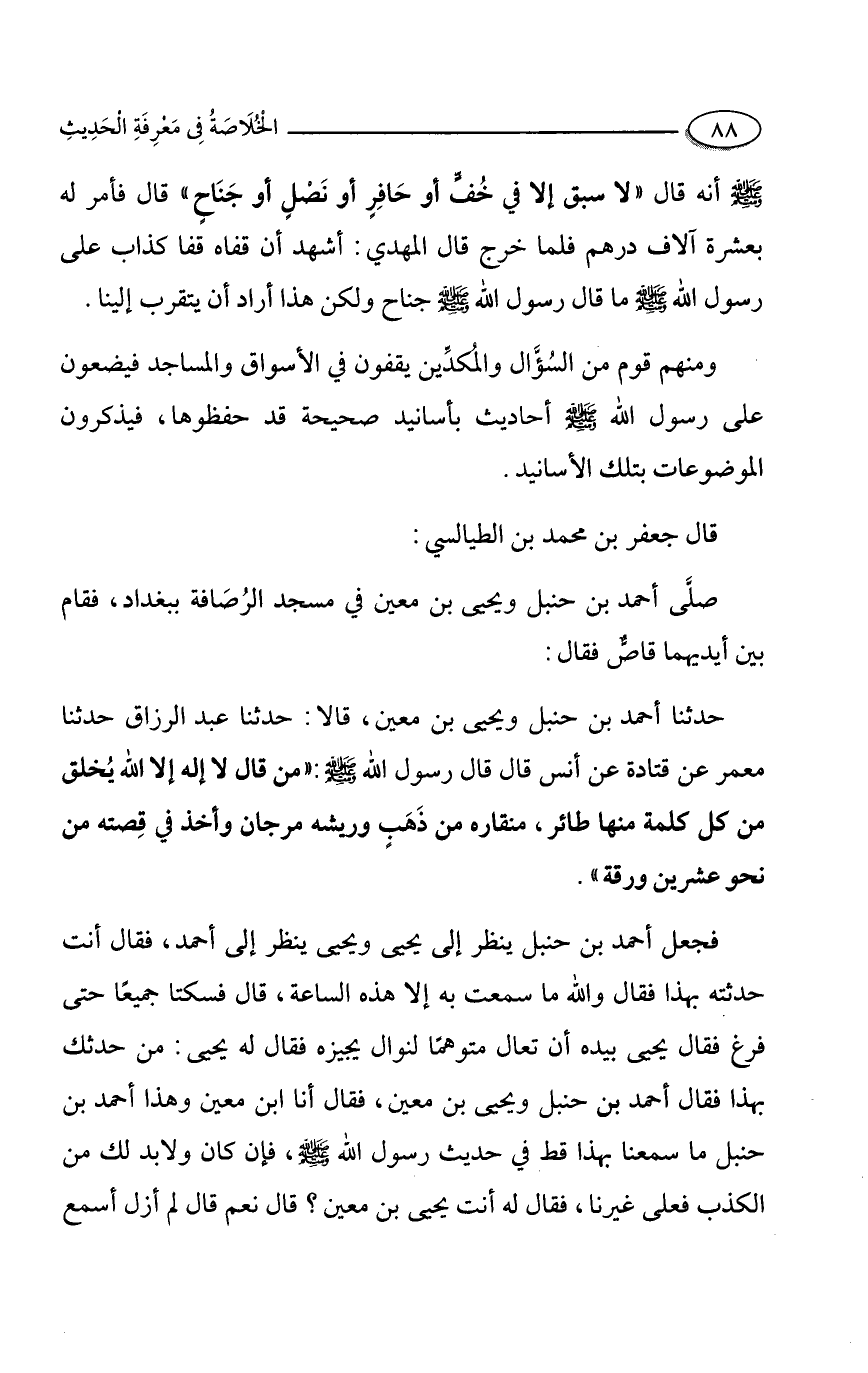 صلَّى أحمد بن حنبل ويحيى بن معين في مسجد الرُصَافة ببغداد، فقام بين أيديهما قاصٌّ فقال: