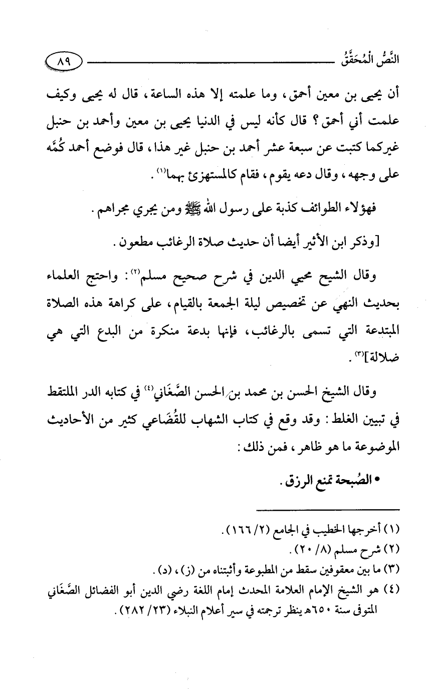 (¬4) هو الشيخ الإمام العلامة المحدث إمام اللغة رضي الدين أبو الفضائل الصَّغَاني المتوفى سنة 650 هـ ينظر ترجمته في سير أعلام النبلاء (23/ 282).