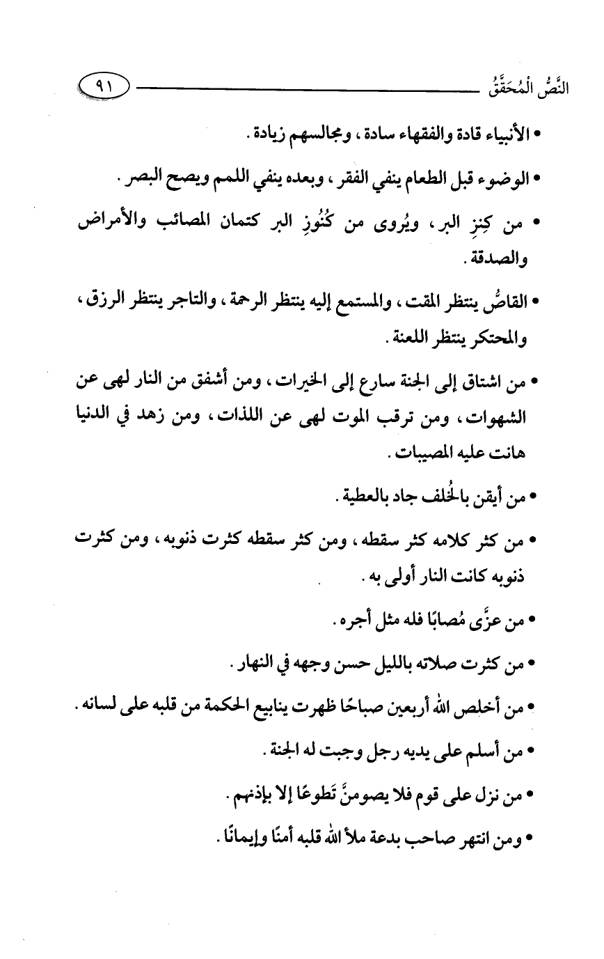 • الوضوء قبل الطعام، ينفي الفقر، وبعده، ينفي اللمم ويصح البصر.