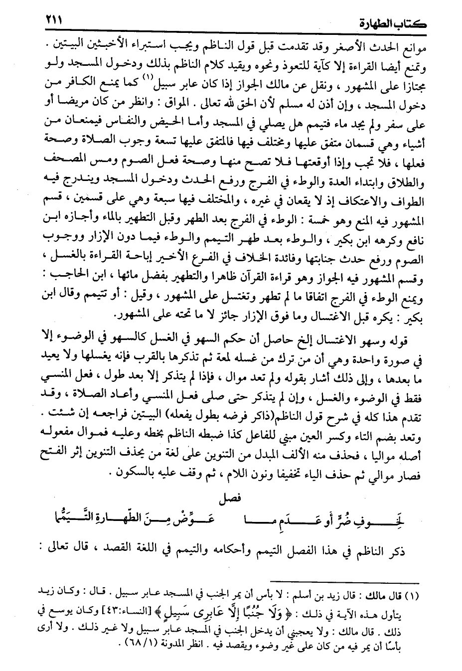 ذكر الناظم في هذا الفصل التيمم وأحكامه والتيمم في اللغة القصد قال تعالى