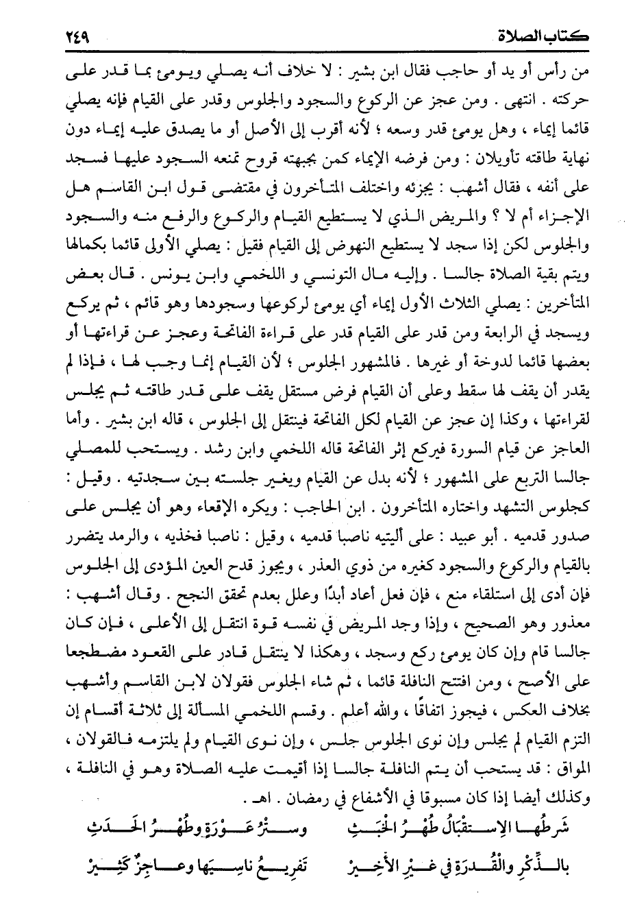 شَرطُها الاِستقْبَالُ طُهْرُ الخْبَثِ