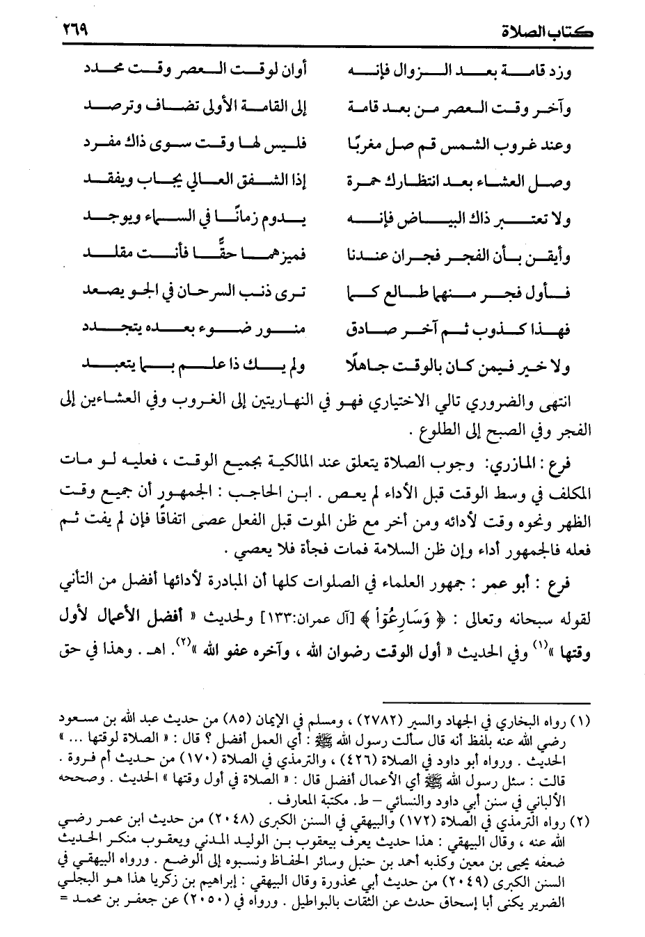 (فرع) أبو عمر جمهور العلماء في الصلوات كلها أن المبادرة لأدائها أفضل من التأني لقوله سبحانه وتعالى {وسابقوا} {وسارعوا} ولحديث «أفضل الأعمال لأول وقتها» وفي الحديث «أول الوقت رضوان الله، وآخره عفو الله» اهـ وهذا في حق