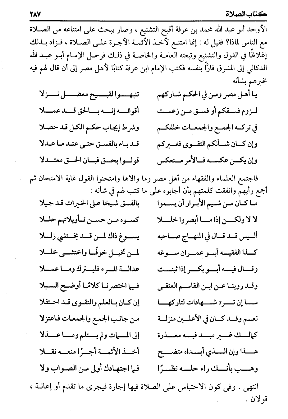 الأوحد أبو عبد الله محمد بن عرفة أقبح التشنيع وصار يبحث على امتناعه من الصلاة مع الناس لماذا؟ فقيل له إنما امتنع لأخذ الأئمة الأجرة على الصلاة فزاد بذلك إغلاظا في القول والتشنيع وتبعته العامة والخاصة في ذلك فرحل الإمام أبو عبد الله الدكالي إلى المشرق فارّاً بنفسه فكتب الإمام ابن عرفة كتابا لأهل مصر إلى أن قال لهم فيه يخبرهم بشأنه