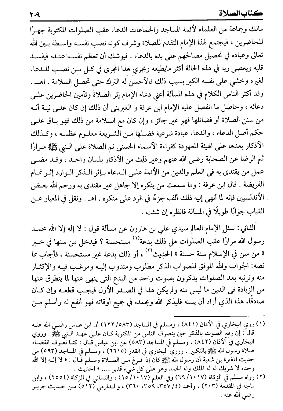 (الثاني) سئل الأمام العالم سيدي علي بن هرون عن مسألة قول لا إله إلا الله محمد رسول الله مراراً عقب الصلوات هل ذلك بدعة مستحسنة فيدخل من سنها في خبر من سن في الإسلام سنة حسنة الحديث أو ذلك بدعة غير مستحسنةفأجاب بما نصه: الجواب والله الموفق للصواب الذكر مطلوب ومندوب إليه ومرغب فيه والإكثار منه وترتبه بعد الصلوات يذكرون بصوت واحد من البدع التى ينهى عنها لما يتطرق عنها من الزيادة فى الدين ماليس منه ولم يكن هذا في الصدر الأول فيجب قطعه وإن كان صادقاً، هذا الذي أراد أن يسنه فليذكر الله ويحمده في جميع أوقاته فهو أنفع له وأسلم من