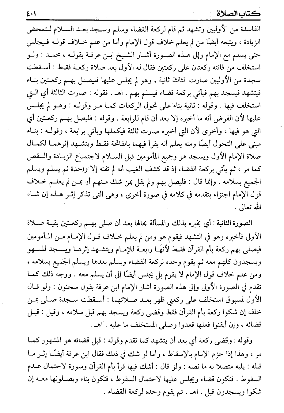 الفاسدة من الأوليين وتشهد ثم قام لركعة القضاء وسلم بعد السلام لتمحض الزيادة ويتبعه أيضا من لم يعلم خلاف قول الامام وأما من علم خلاف قوله فيجلس حتى يسلم مع الامام وإلى هذه الصورة أشار الشيخ ابن عرفة بقوله محمد ولو استخلف من فاتته ركعتان على ركعتين فقال له الأول بعد صلاة ركعة فقط أسقطت سجدة من