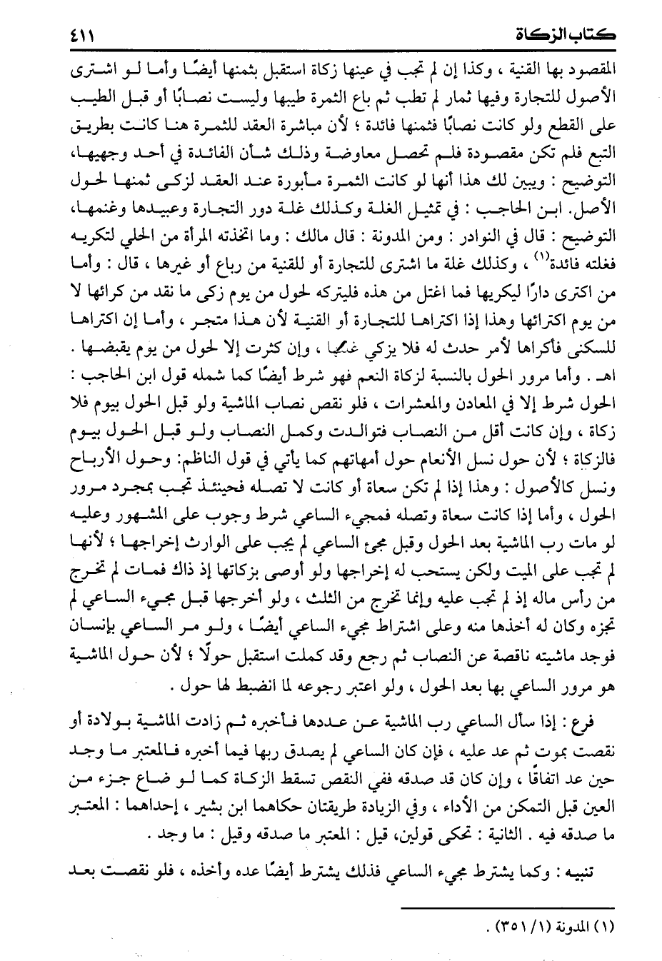 وأما مرور الحول بالنسبة لزكاة النعم فهو شرط أيضا كما شمله قول ابن الحاجب والحول شرط إلا في المعادن والمعشرات فلو نقص نصاب الماشية ولو قبل الحول بيوم فلا زكاة وإن كانت أقل من النصاب فتوالدت وكمل النصاب ولو قبل الحول بيوم فالزكاة لأن حول نسل الأنعام حول أمهاتهم كما يأتي في قول الناظم: