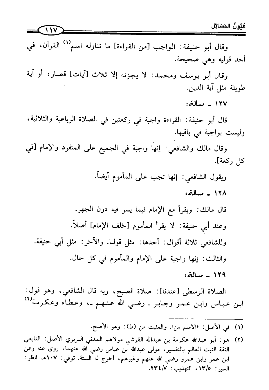 (¬2) هو: أبو عبد الله عكرمة بن عبد الله القرشي مولاهم المدني البربري الأصل: التابعي الثقة الثبت العالم بالتفسير، مولى عبد الله بن عبّاس رضي الله عنهما، روى عنه وعن ابن عمر وابن عمرو رضي الله عنهم وغيرهم، أخرج له الستة. توفي: 107 هـ. انظر: السير: 5/ 13، التهذيب: 7/ 234.