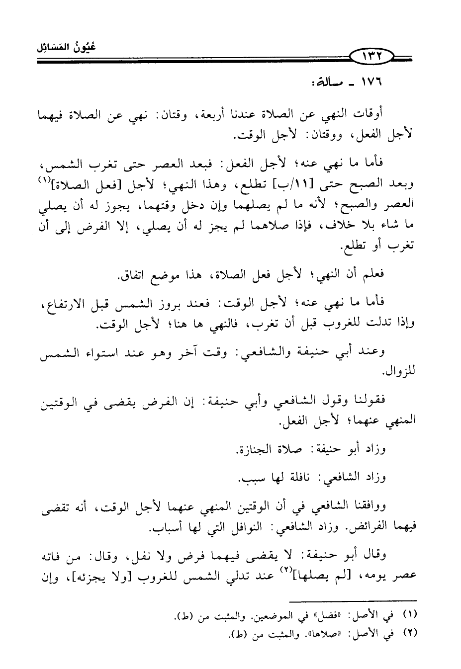 فأمّا ما نهي عنه؛ لأجل الوقلت: فعند بروز الشّمس قبل الارتفاع، وإذا تدلت للغروب قبل أن تغرب، فالنهي ها هنا؛ لأجل الوقت.