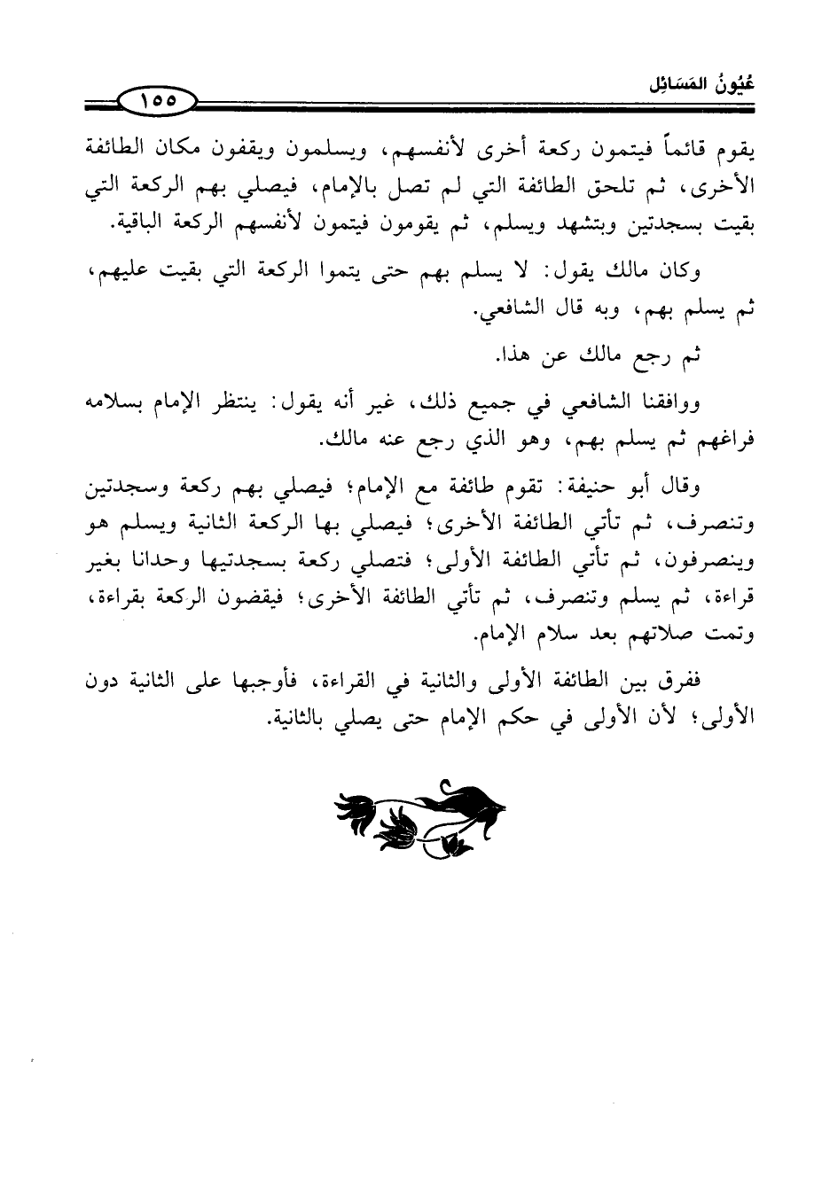 ووافقنا الشّافعيّ في جميع ذلك، غير أنّه يقولى: ينتظر الإمام بسلامه فراغهم ثمّ يسلم بهم، وهو الّذي رجع عنه مالك.