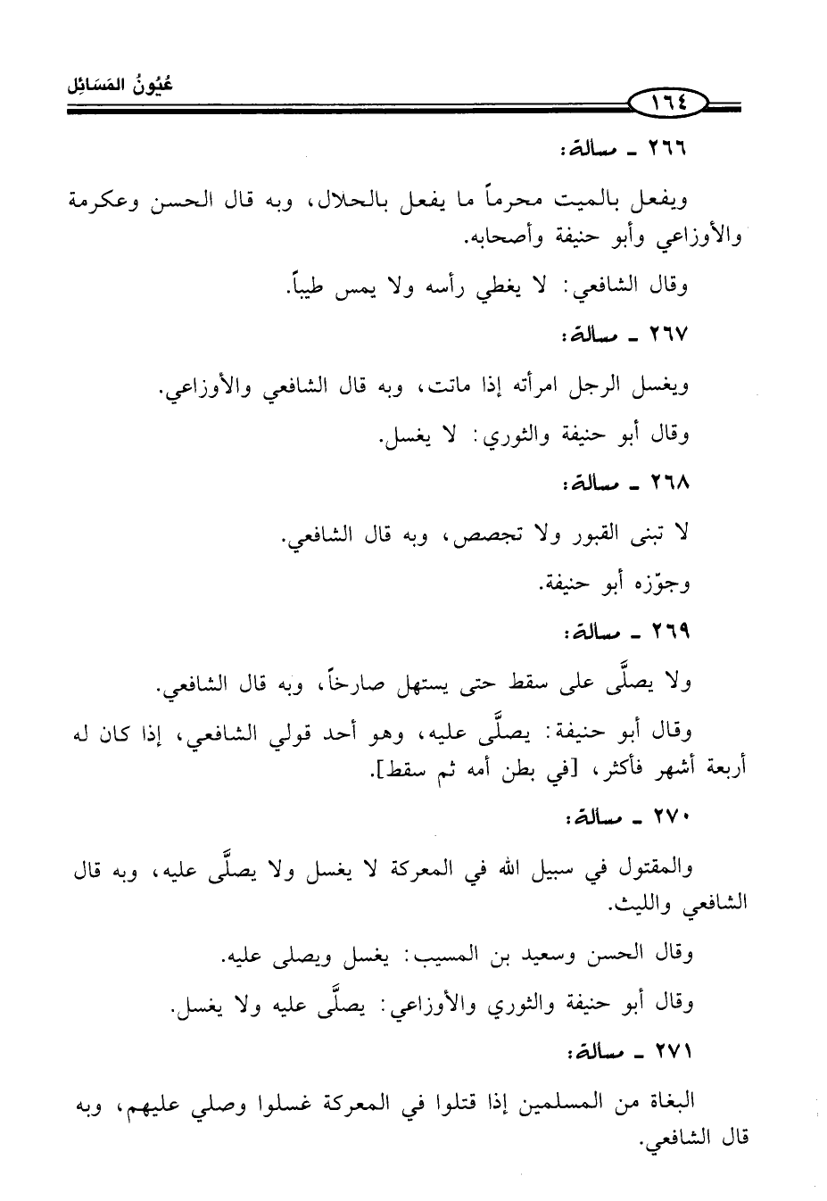 والمقتول في سبيل الله في المعركة لا يغسل ولا يصلَّى عليه، وبه قال الشّافعيّ والليث.