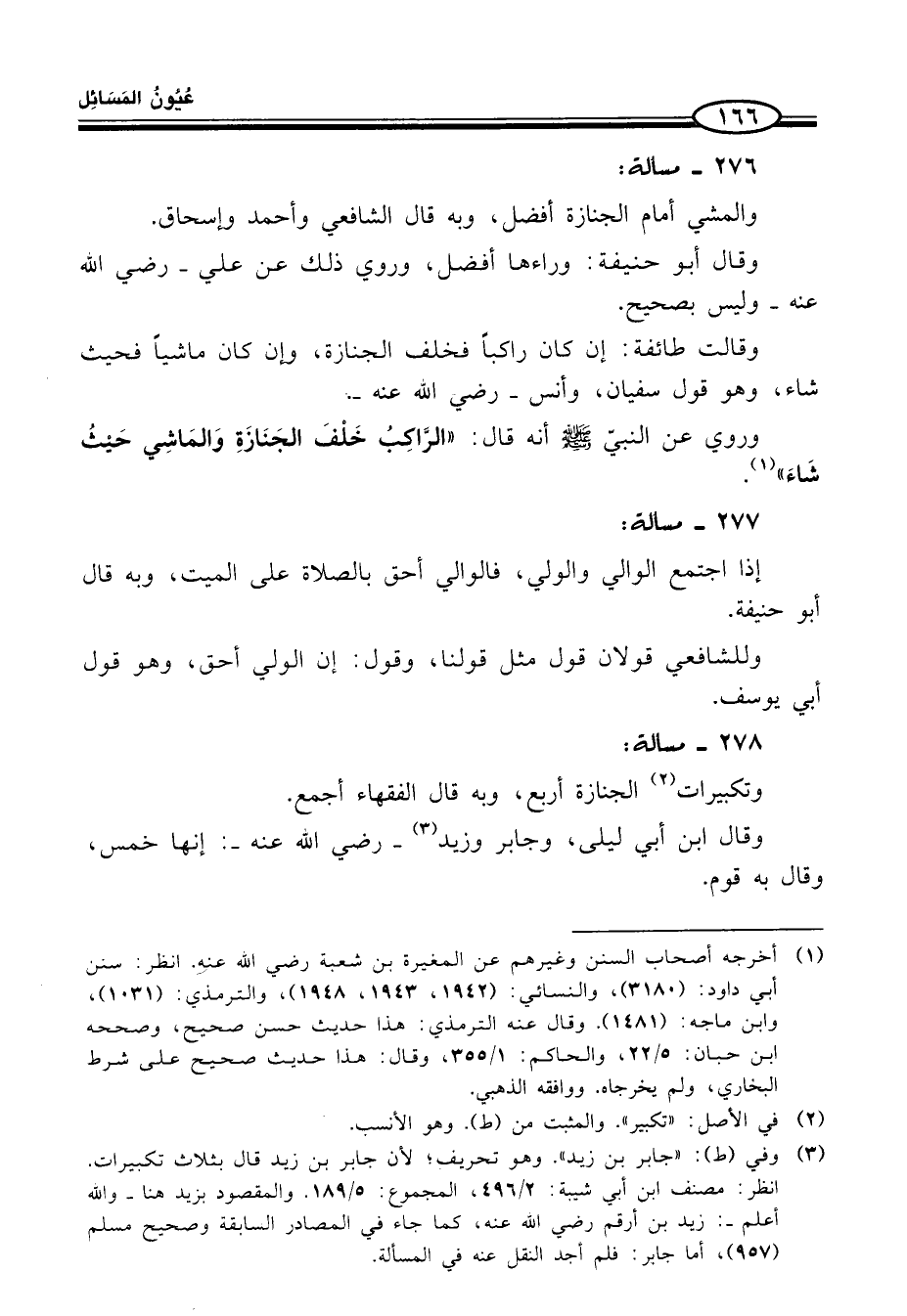 (¬3) وفي (ط): "جابر بن زيد". وهو تحريف؛ لأنّ جابر بن زيد قال بثلاث تكبيرات. انظر: مصنف ابن أبي شيبة: 2/ 496، المجموع: 5/ 189. والمقصود يزيد هنا - والله أعلم -: زيد بن أرقم رضي الله عنه، كما جاء في المصادر السابقة وصحيح مسلم (957)، أمّا جابر: فلم أجد النقل عنه في المسألة.