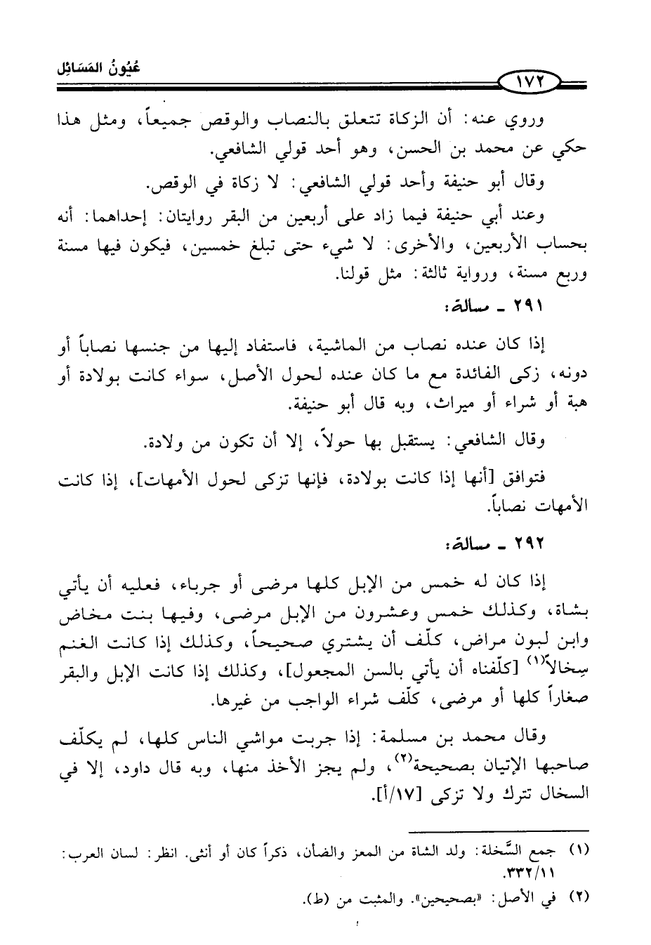 فتوافق [أنّها إذا كانت بولادة، فإنها تزكى لحول الأمهات]، إذا كانت الأمهات نصابًا.