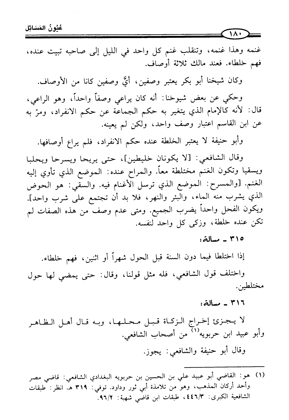 (¬1) هو: القاضي أبو عبيد علي بن الحسين بن حربويه البغدادي الشّافعيّ: قاضي مصر وأحد أركان المذهب، وهو من تلامذة أبي ثور وداود. توفي: 319 هـ. انظر: طبقات الشّافعيّة الكبرى: 3/ 446، طبقات ابن قاضي شهبة: 2/ 96.