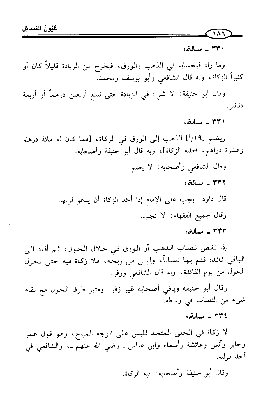 لا زكاة في العلّي المتخذ للبس على الوجه المباح، وهو قول عمر وجابر وأنس وعائشة وأسماء وابن عبّاس -رضي الله عنهم-، والشّافعيّ في أحد قوليه.
